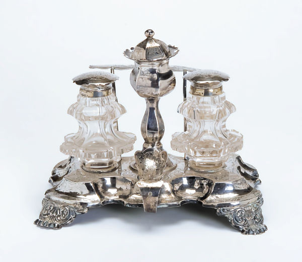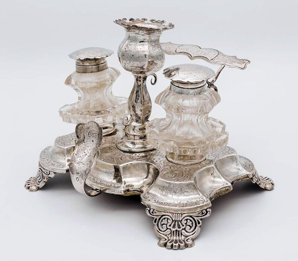 Willem Littel, op dat moment een van de belangrijkste werkmeesters in Schoonhoven, ging in 1861 een vennootschap aan met Gilles Grevink (1812-1872)4Hij wordt in de regel vermeld als Grevink, maar bij zijn geboorte ingeschreven als Grevinck. onder de naam W. Littel & Compagnie, met als doel “het fabriceren van gouden en zilveren werken, benevens den handel in genoemde artikelen”.5“Geregtelijke aankondigingen”, Nederlandschs Staatscourant, 28 maart 1861. De twee hebben elkaar waarschijnlijk tijdens Willems jaren in Amsterdam leren kennen. Grevink was werkmeester en had een winkel aan de Kalverstraat in Amsterdam. Hij had ervaring met grootwerk, in tegenstelling tot de Schoonhovense zilversmeden die vooral klein zilverwerk maakten. In Schoonhoven werd hij aan de Haven een buurman van Willem Littel.6RenĂ© Kappers (2001) “De eerste bestuurders van “De Nijverheidsvereeniging van Goud- en Zilversmeden in Schoonhoven” Elf geschreven portretten over hun herkomst en hun bindingen”, Historische Encyclopedie Krimpenerwaard, jaargang 26 (2001). (Online in te zien via de Hollandse genealogische databank van Ons Voorgeslacht).